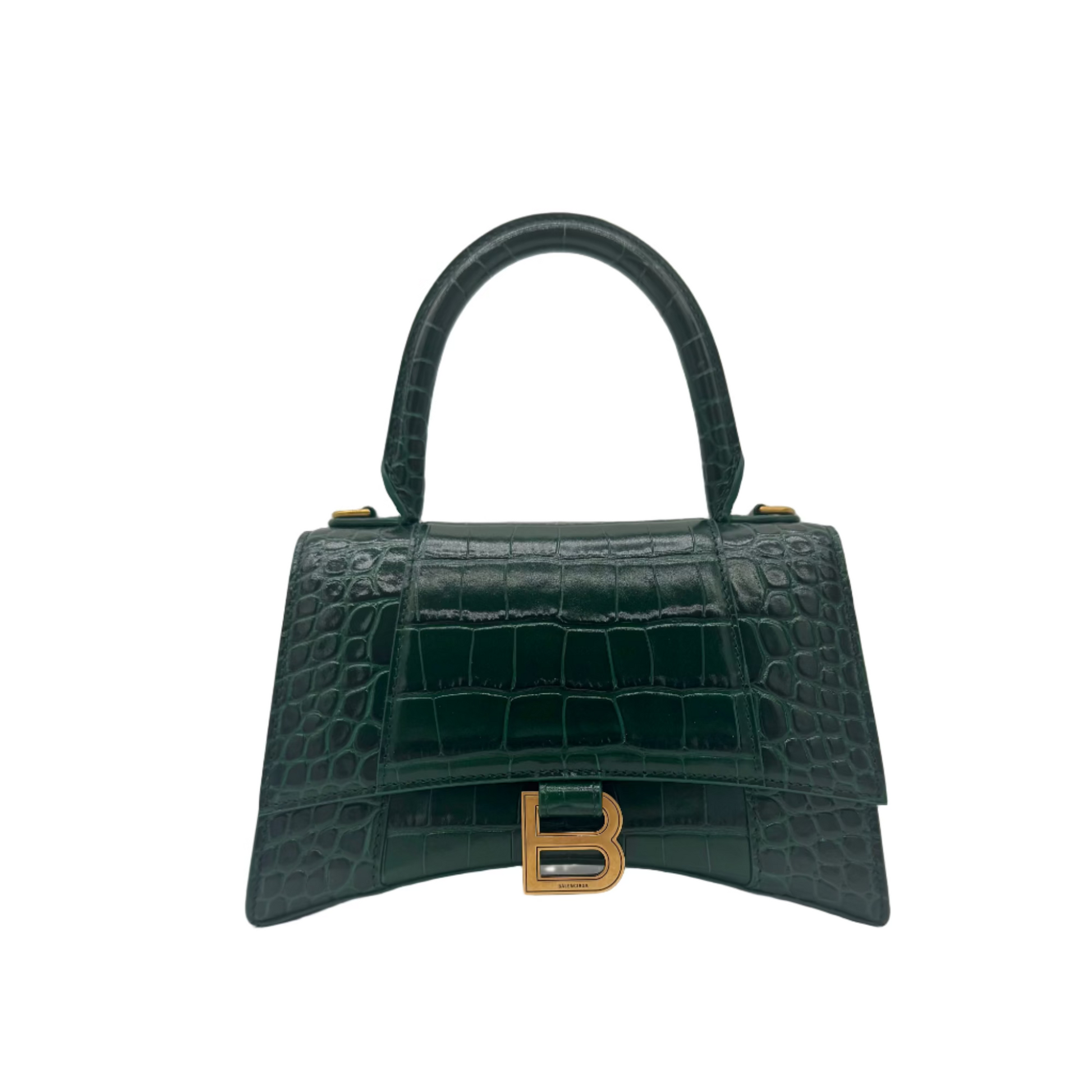 Balenciaga green croc embossed hourglass top handle handbag (small)